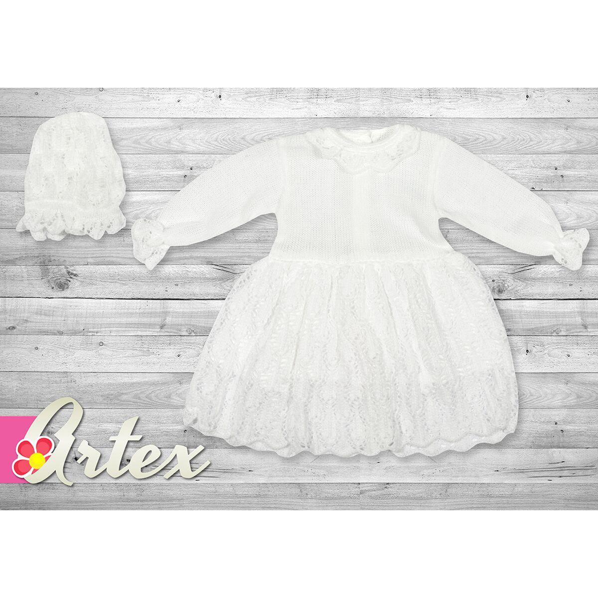 Artex baby pleteni komplet (haljina i kapa) - bijeli 15615