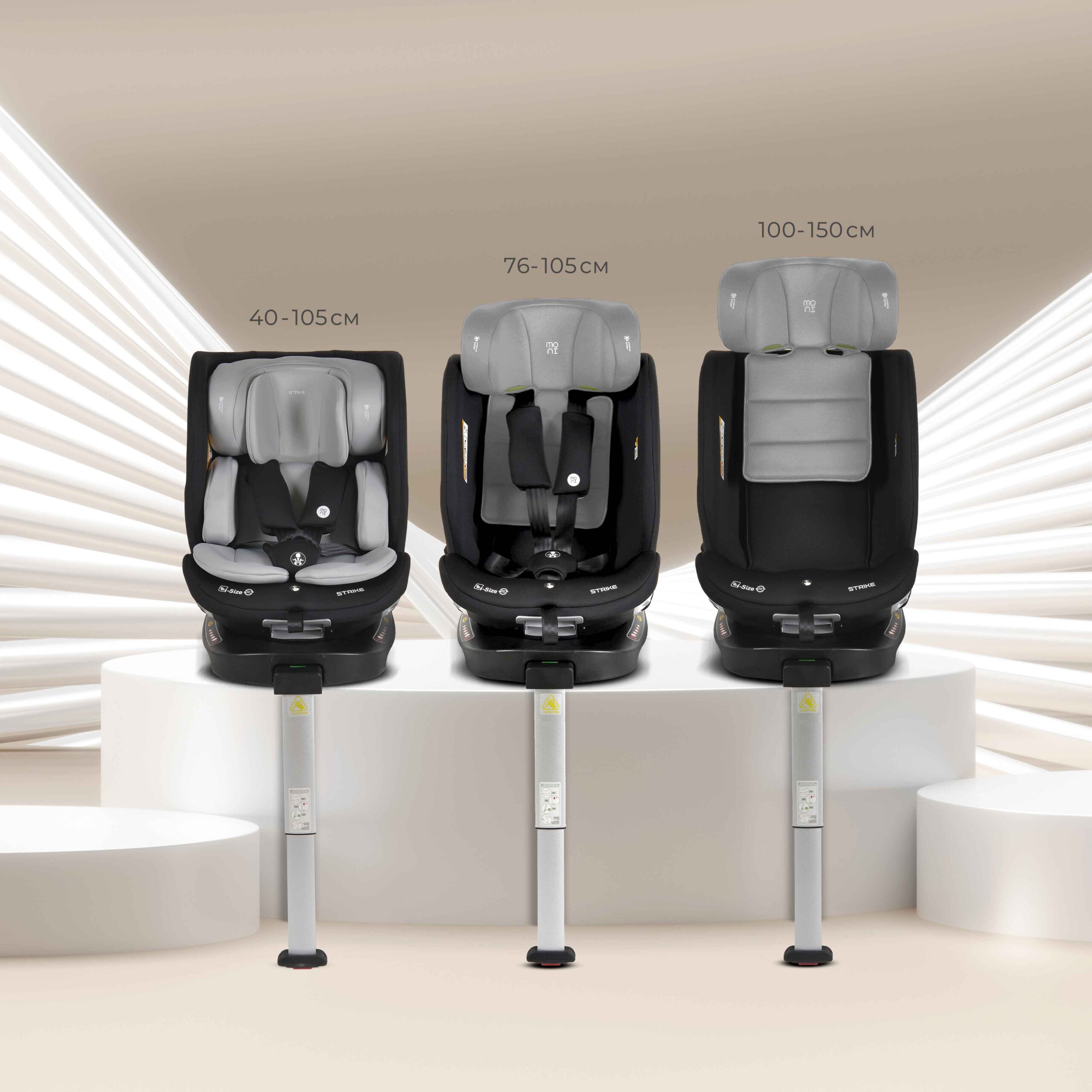 “Strike” višenamjenska autosjedalica dizajnirana za sigurnost i udobnost od prvih mjeseci do kraja djetinjstva. Pogodna za djecu visine od 40 do 150 cm (otprilike od rođenja do 12 godina), Strike ispunjava zahtjeve R129/i-Size i kombinira najnovije tehnologije s vrhunskom izradom.
