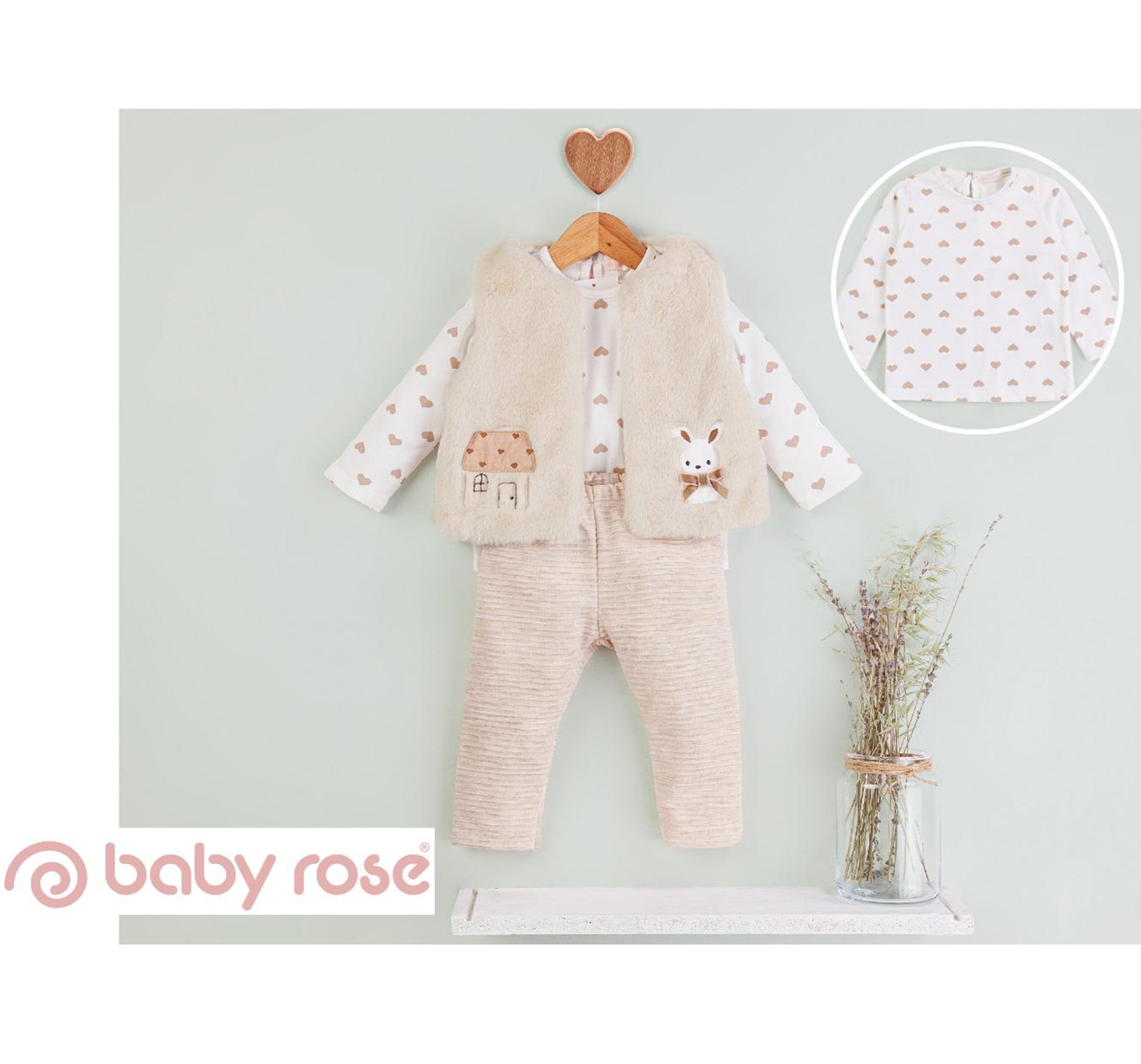Babyrose komplet izrađen je od udobnog i kvalitetnog materijala. Sastoji se od majice, prsluka i tajica.