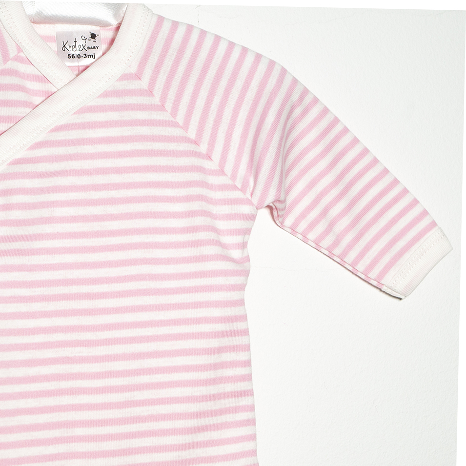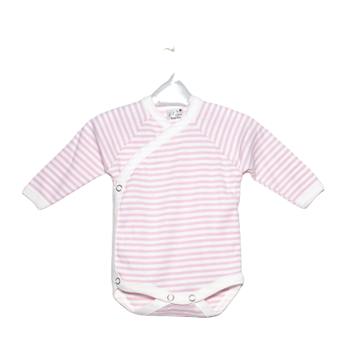 Kretex body benkica bijela sa roza srcima, dugi rukav, prednji dio se preklapa, te tako omogućava lakše odijevanje.