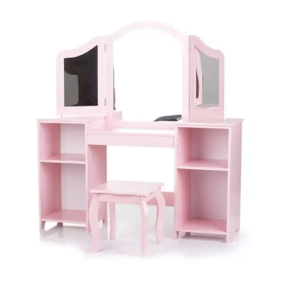 Kozmetički set s ogledalom i stolicom praktičan je i lijep set za sve male princeze i ljepotice. Dolazi u nježno ružičastoj boji, s prostranim spremištem za sve dodatke – mašne, kopče za kosu, šminku, nakit i još mnogo toga.