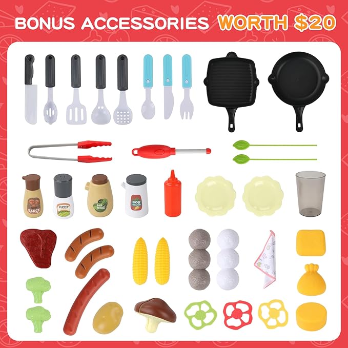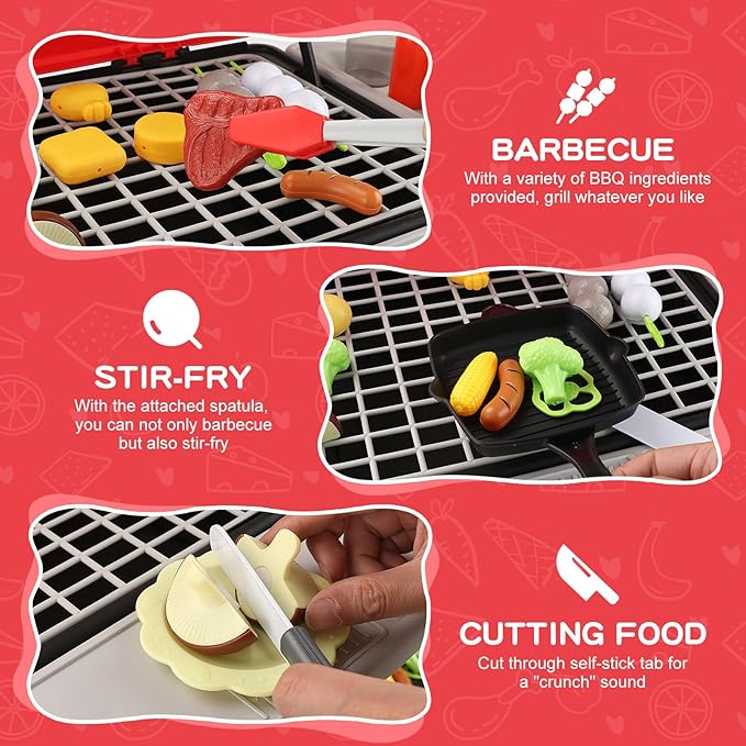 Set se sastoji od 41 dodatka. Dok pečete roštilj čuti ćete zvuk pečenja (zvučni efekti), te vidjeti žar kako gori (svjetlosni efekti). Rotilj također ima efekt pare, ako ulijete vodu u spremnik.