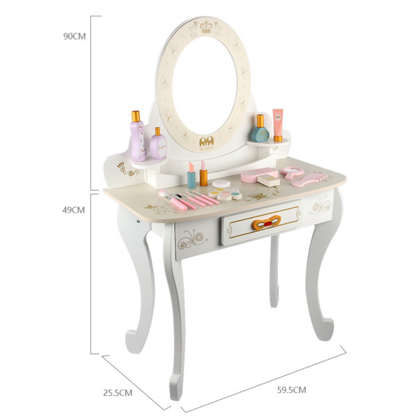 Ima veliko ovalno ogledalo, koje se može pomicati i dvije male police na koje se mogu staviti parfemi, kreme i sve stvari koje princeze koriste, a koje dobijete uz stol.