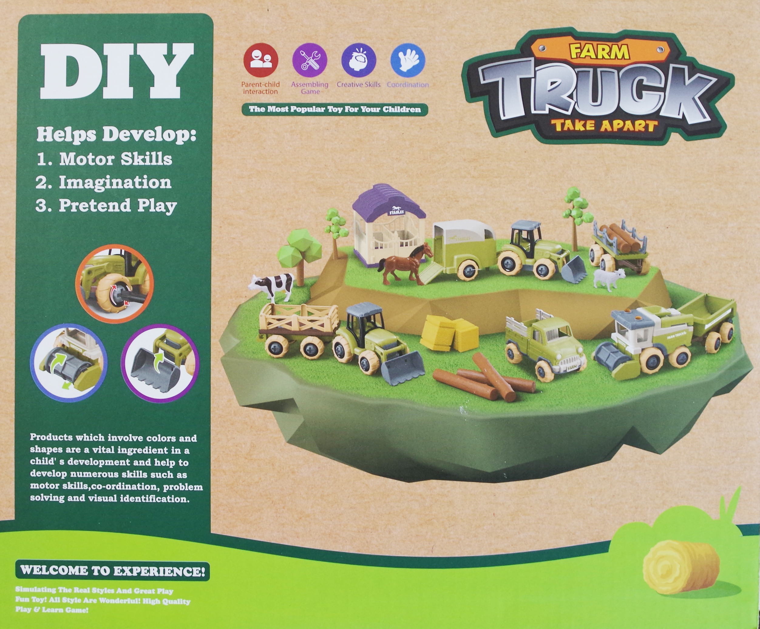 Vaši mališani će uživati vozeći i radeći farmerske poslove. Također će razvijati svoje vještine rastavljajući i sastavljajući vozila.