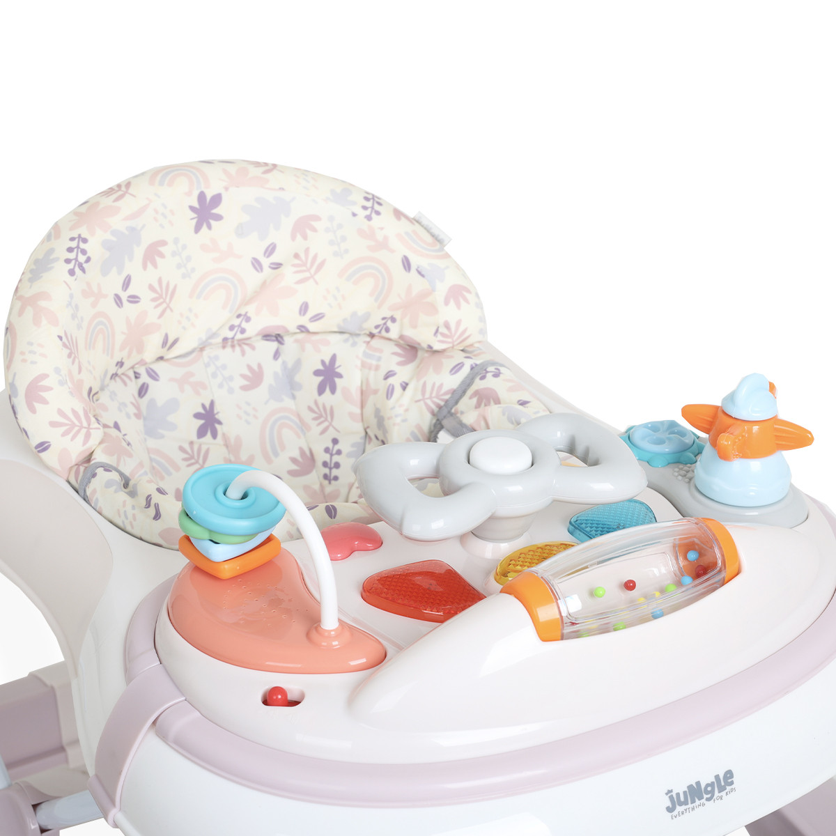 - Na prednjem dijelu su edukativne igračke koje će zabaviti vaše dijete: zvečke, prekidači i tipke