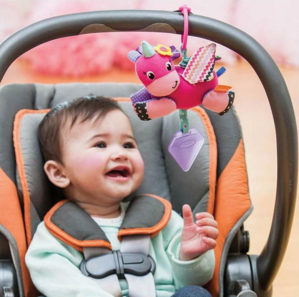 - Igračka se može objesiti na autosjedalicu, kolica ili prečku.