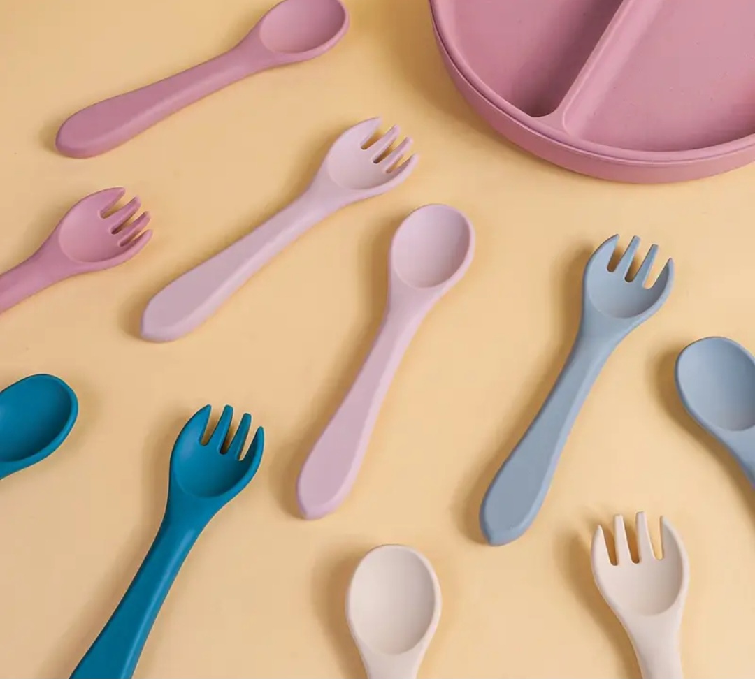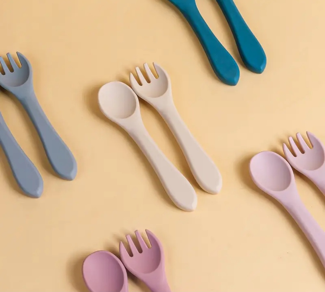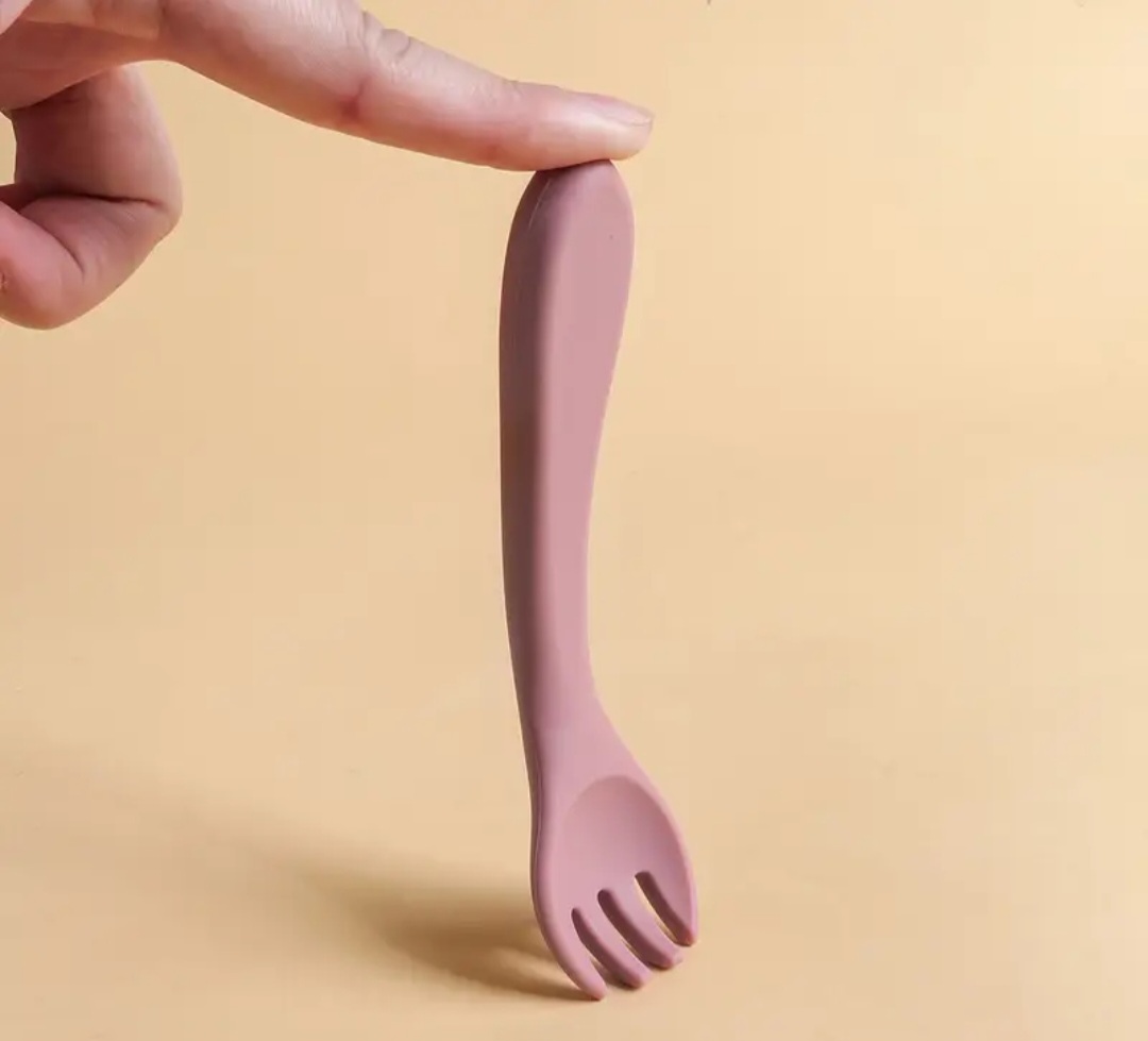 Jungle 2-dijelni silikonski pribor za jelo sadrži žlicu (3.1×13.5cm) i vilicu (3.1×13.4cm) – ugodne na dodir i prilagođene malim ručicama.