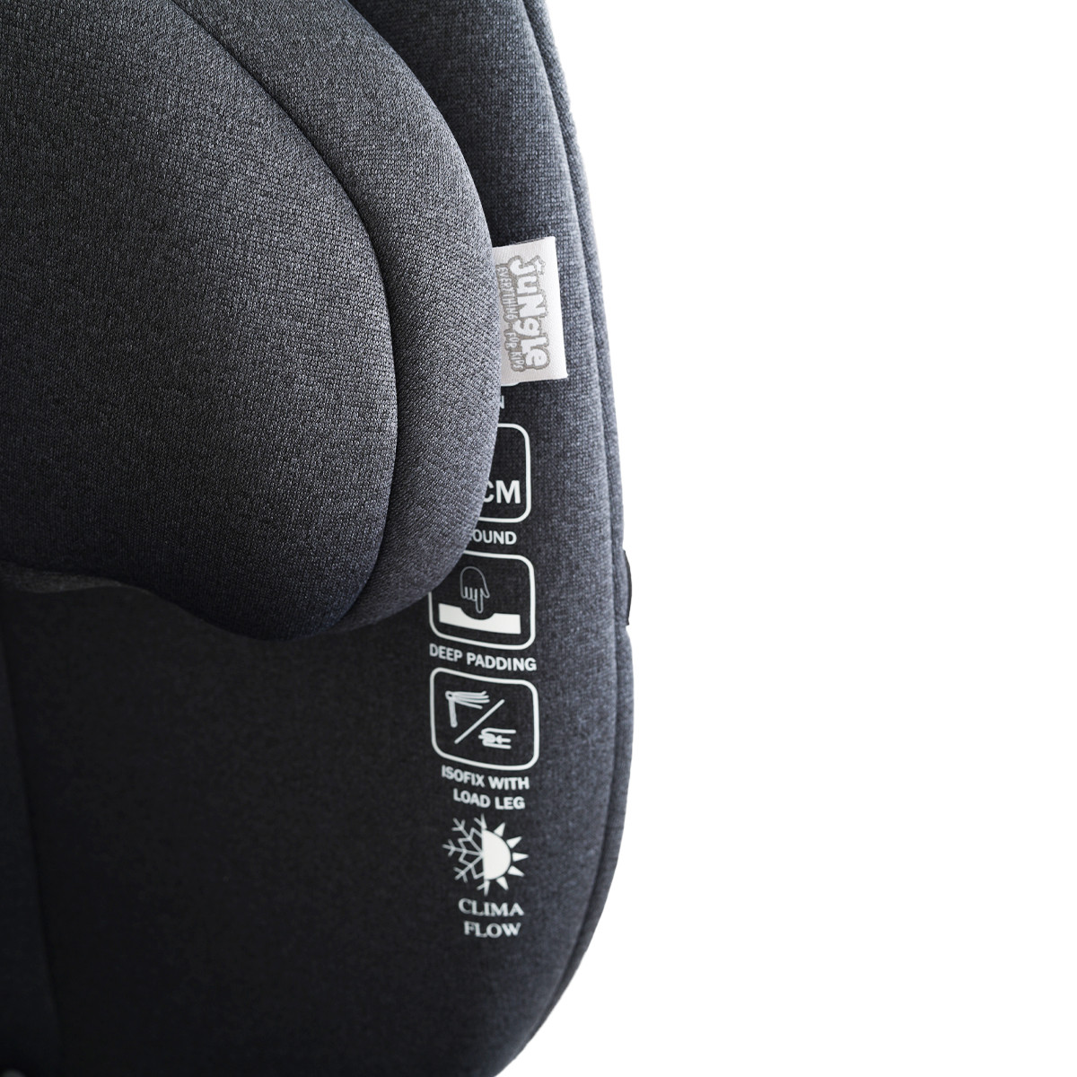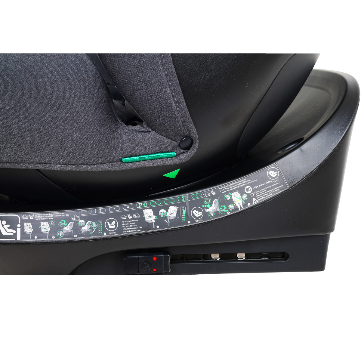 Integrirana u rotirajuću bazu opremljenu Isofix sistemom i potpornom nogom sa indikatorima ispravne montaže. Funkcija rotiranja od 360° omogućava laku promjenu pravca kretanja i udobno vezivanje djeteta za autosjedalicu, kao i vađenje iz automobila.
