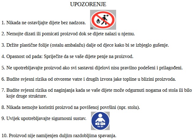 • Prostrano i meko sjedište s pojasom za vezivanje u 5 točaka, pruža dodatnu zaštitu i udobnost bebi