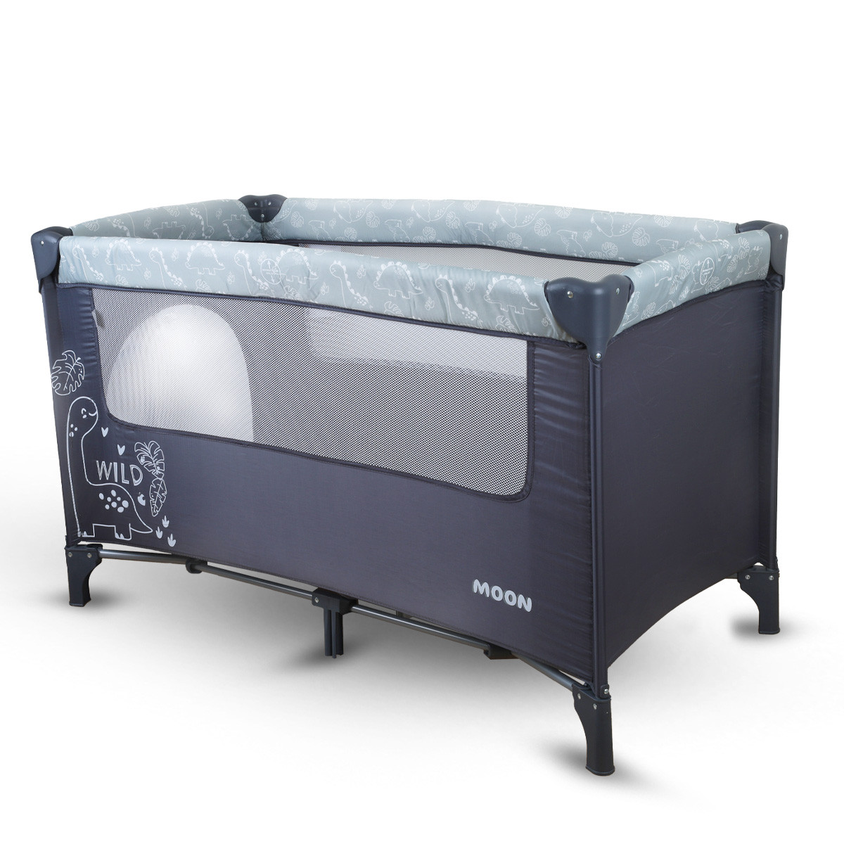 “Jungle Moon” prenosivi krevetić sigurno je mjesto za vašu bebu, bilo za odmor ili igru. Prostran i udoban, može se koristiti od prvog dana kod kuće ili na putovanju. U krevetić se može postaviti madrac na dva nivoa, dimenzija 120cm x 60cm što će omogućiti dodatnu udobnost.