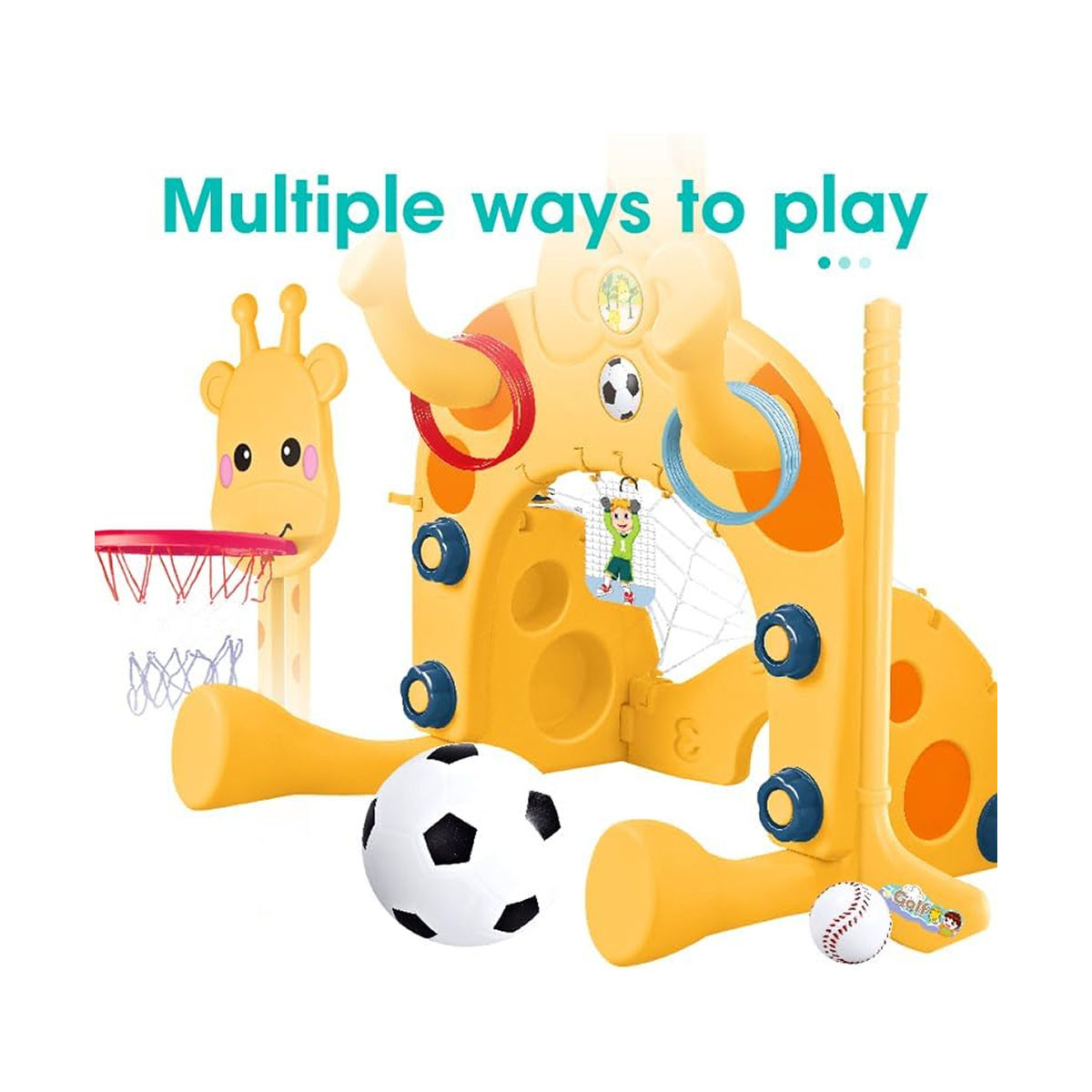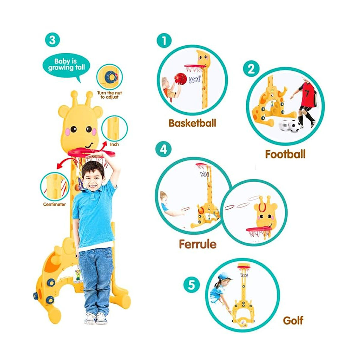 Ova višenamjenska igračka za sport u obliku žirafe donosi brojne aktivnosti.