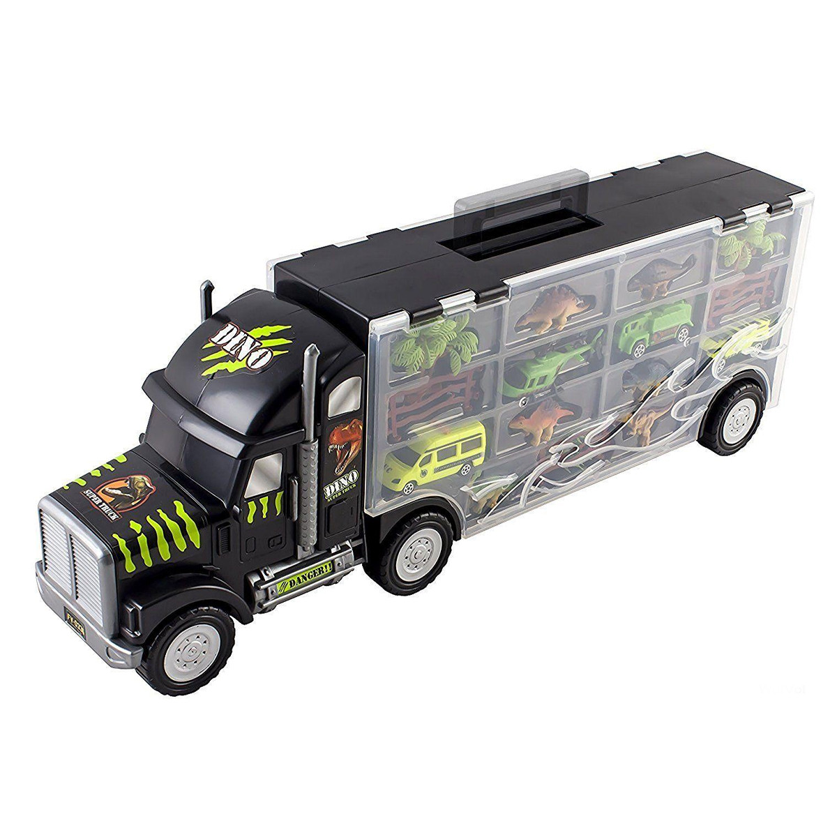 Veliki dječji kamion prevozi 6 dinosaura, helikopter i još tri vozila.