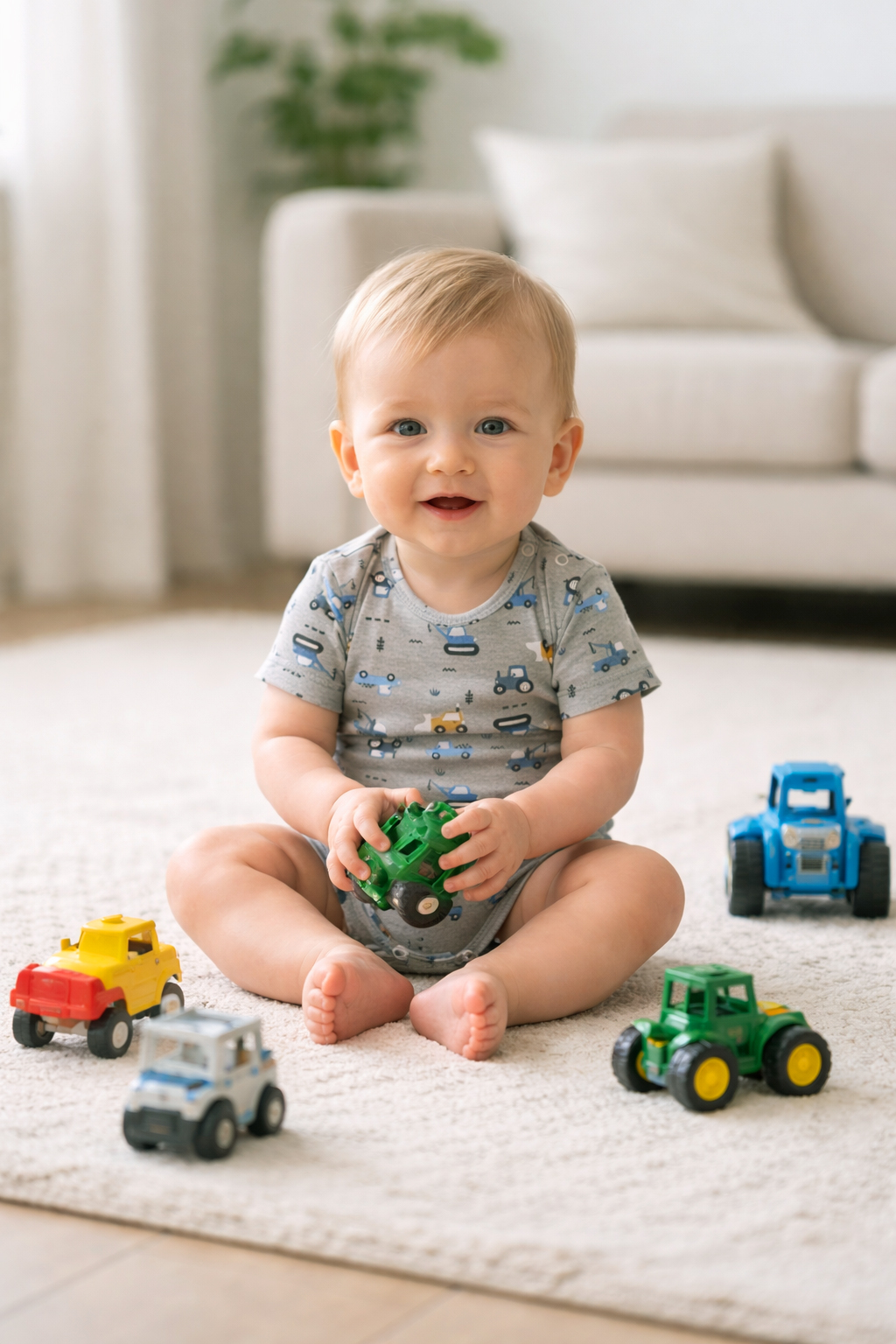 Izrađen od visokokvalitetne mješavine 95% pamuka i 5% elastana, izuzetno je mekan, prozračan i nježan prema osjetljivoj bebinoj koži, dok dodatak elastana omogućava potrebnu elastičnost i slobodu pokreta.