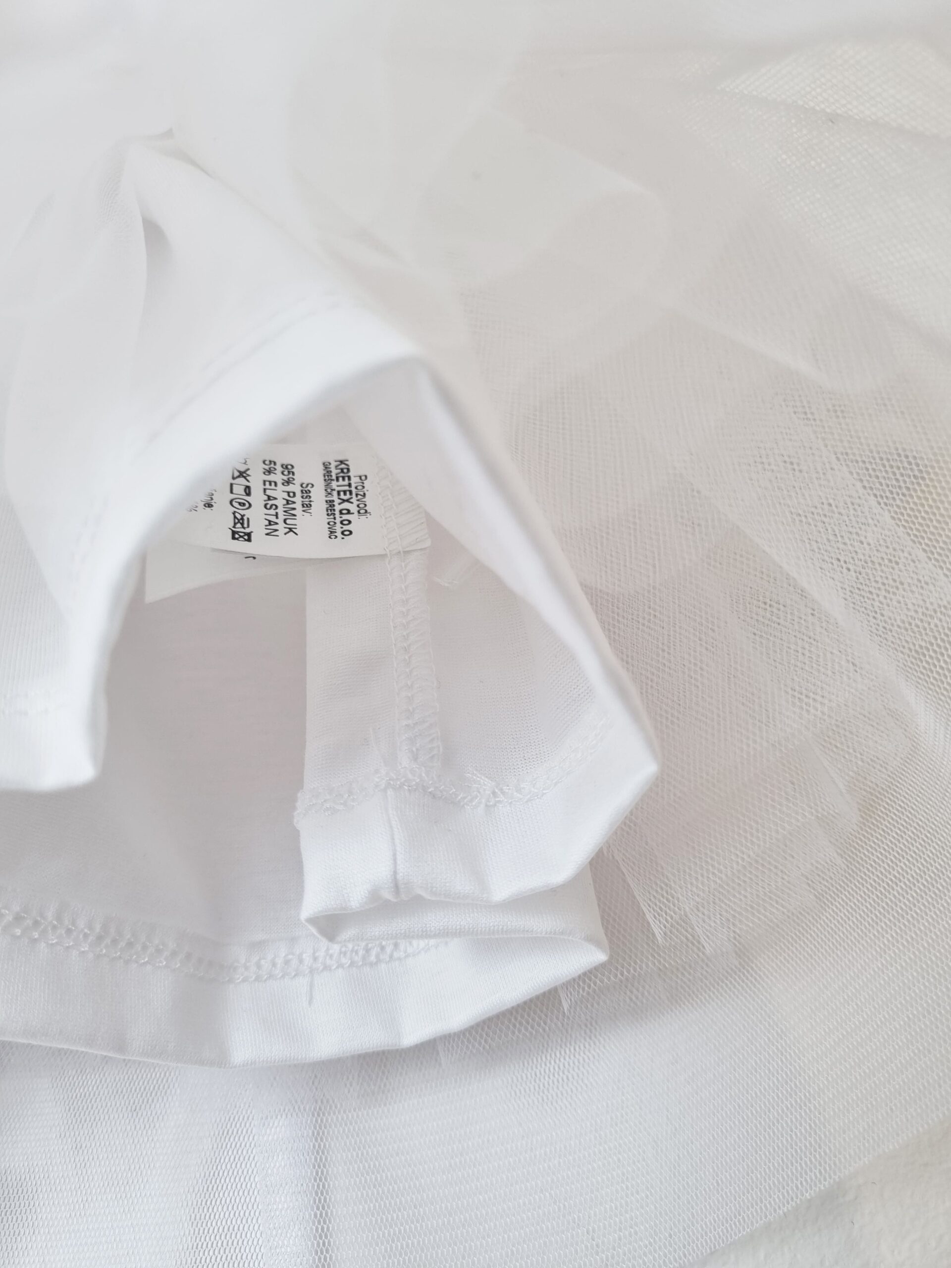 Haljina je izrađena s pažnjom na svaki detalj – mekana pamučna podstava pruža potpunu udobnost, sloj tila dodaje raskošan izgled, dok završni, mekani sloj tila zaokružuje ovu elegantnu priču.