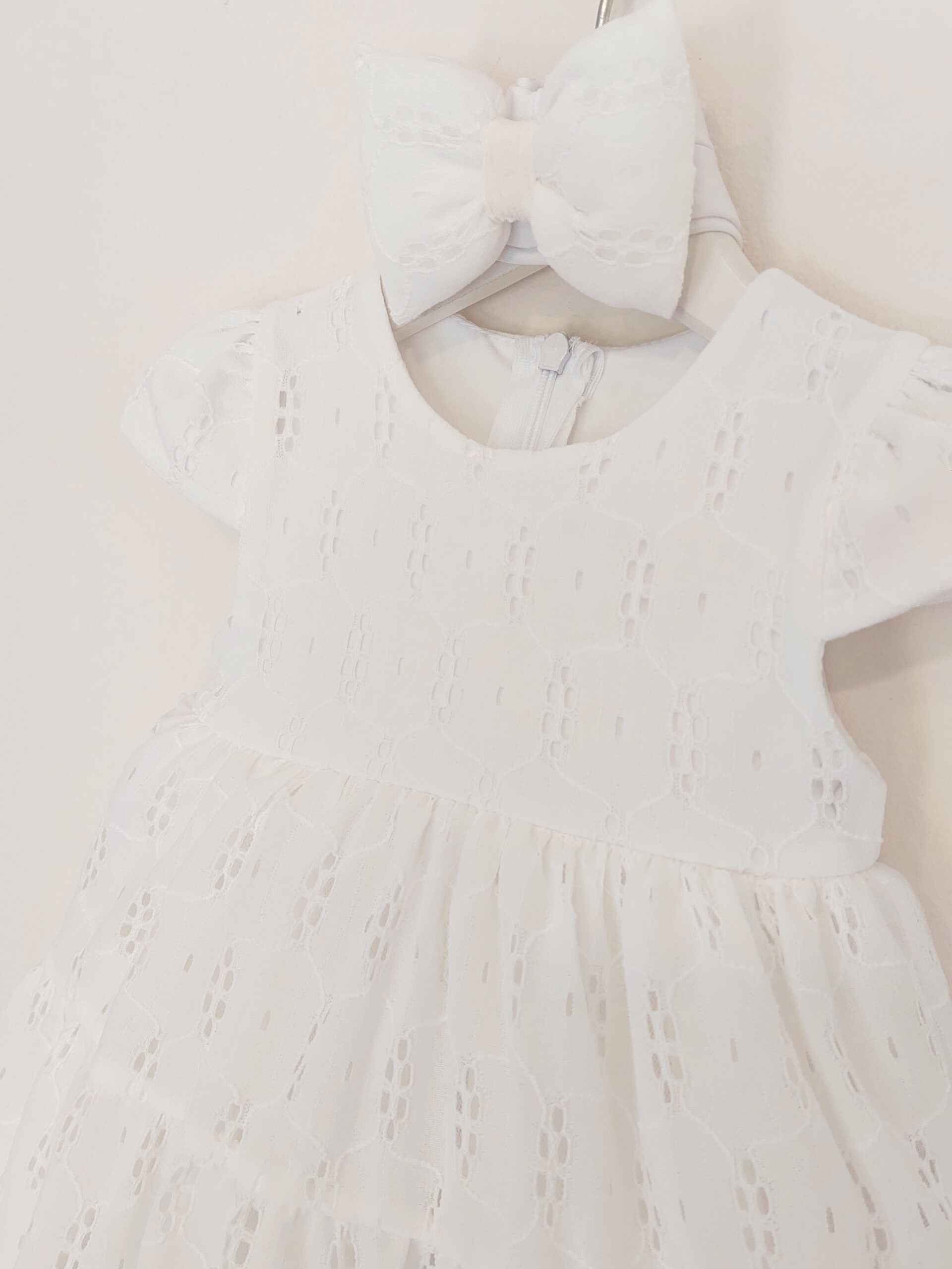 Predivna, svečana haljina za bebe u kombinaciji rupičastog materijala, podstave od udobnog pamuka i tila koji dodaje na raskoši.