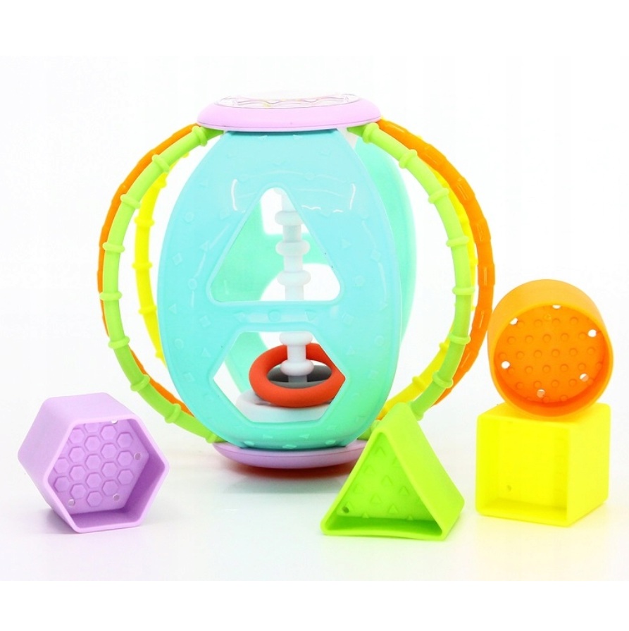 Sve figure (različitih boja i oblika) imaju svoj odgovarajući oblik na lopti. Igrajući se, beba će moći izvršavati jednostavne zadatke gurajući figure u odgovarajući oblik na lopti.