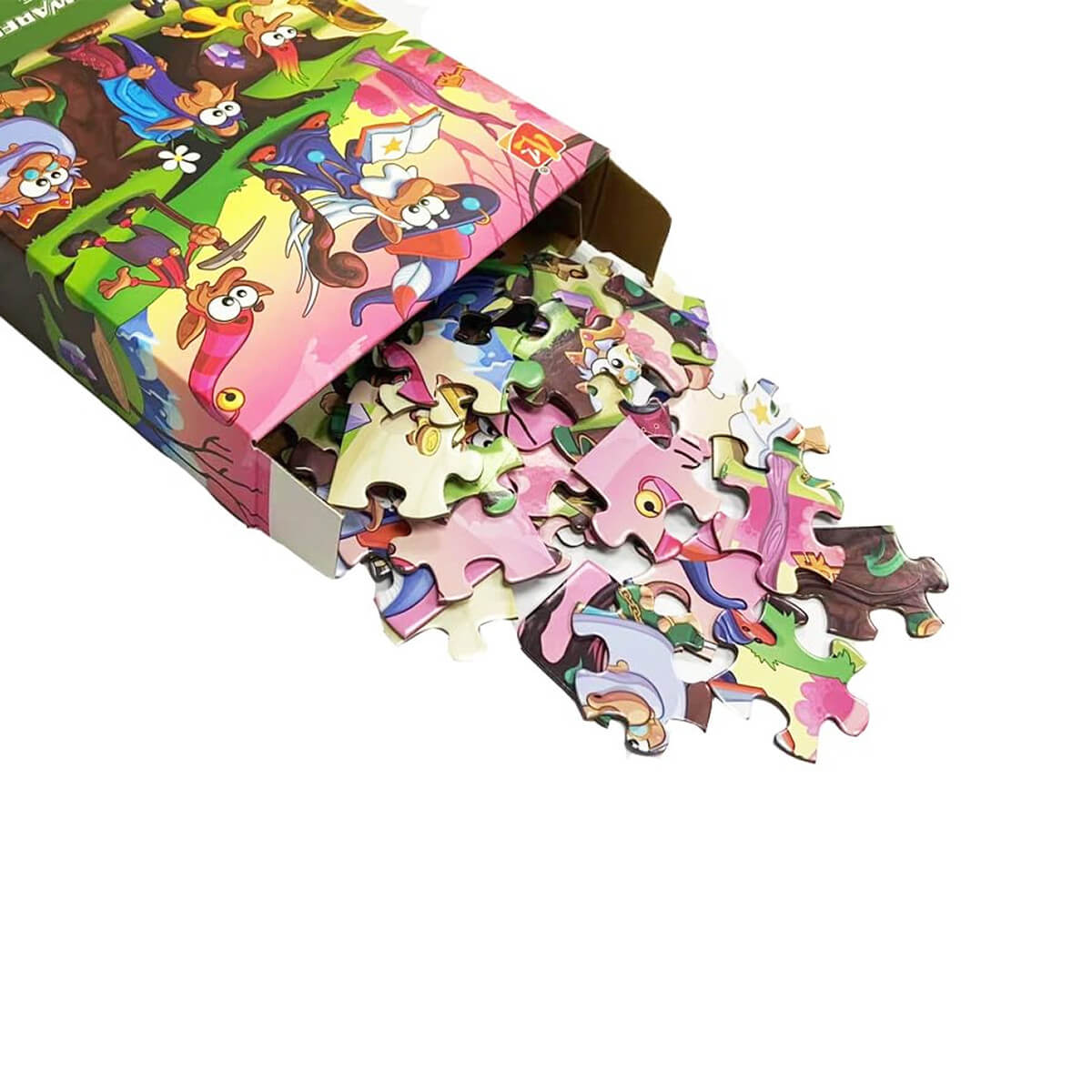 Šarenim i zanimljivim dizajnom pruža zabavu dok djeca slažu puzzle i stvaraju sliku.